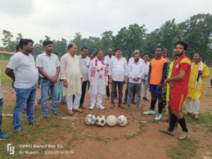 इसकी शुरुआत मुख्य अतिथि जिला बीससूत्री उपाध्यक्ष नितेश कुमार सिंह, विशिष्ट अतिथि झामुमो जिला अध्यक्ष शंभू राम और युवा जिला अध्यक्ष संजय छोटू सहित अन्य सभी अतिथियों ने संयुक्त रूप से फीता काटकर, बॉल को किक मारकर तथा खिलाड़ियों से परिचय प्राप्त कर किया.