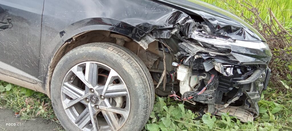 हादसे में कार और बाइक दोनों को भारी नुकसान पहुंचा है। कार सवार दो लोगों को भी मामूली चोटें आई हैं।