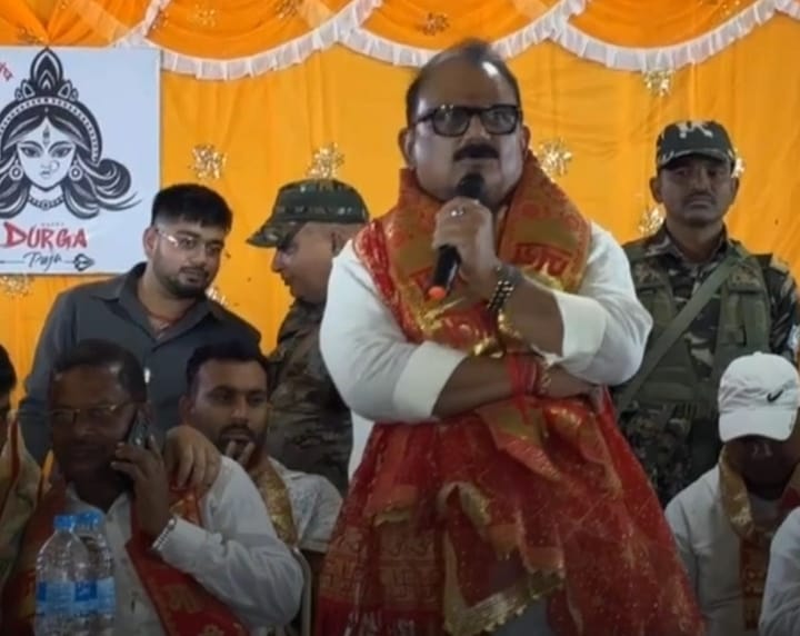 रमकंडा के पूजा पंडाल में पहुंचे पूर्व मंत्री मिथलेश कुमार ठाकुर, माता रानी का लिया आशीर्वाद